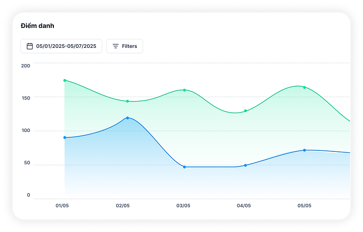 Dễ dàng quan sát số lượt điểm danh thay đổi theo từng ngày.
