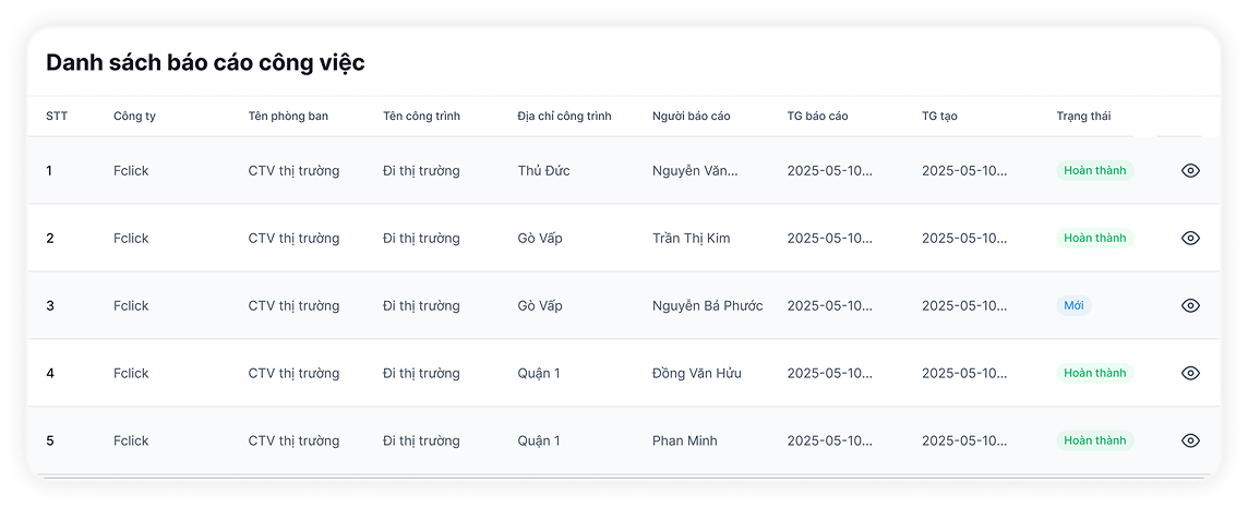 Báo cáo công việc mọi lúc và có thể kiểm soát được chất lượng công việc và báo cáo từng thời điểm thông qua vị trí và hình ảnh.